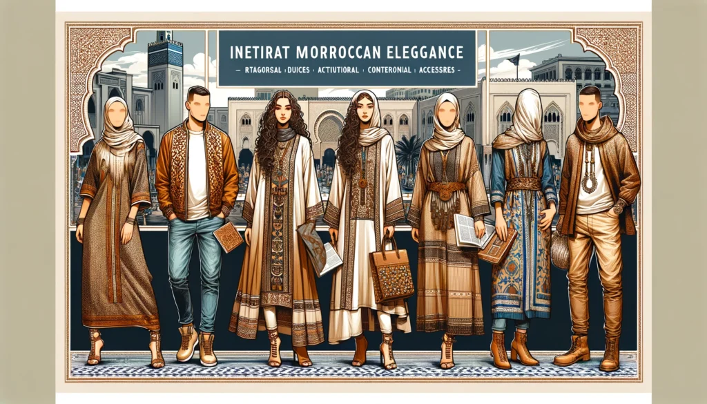 The caftan, a staple of Moroccan fashion, is renowned for its versatility and elegance. For a modern twist, belt a flowing caftan at the waist and pair it with sleek leggings or skinny jeans. Add ankle boots or strappy sandals for a look that transitions effortlessly from day to night. For men, a shorter, tunic-style caftan can be paired with tailored trousers and loafers, bridging traditional style with modern sophistication.