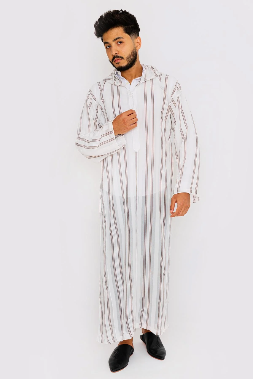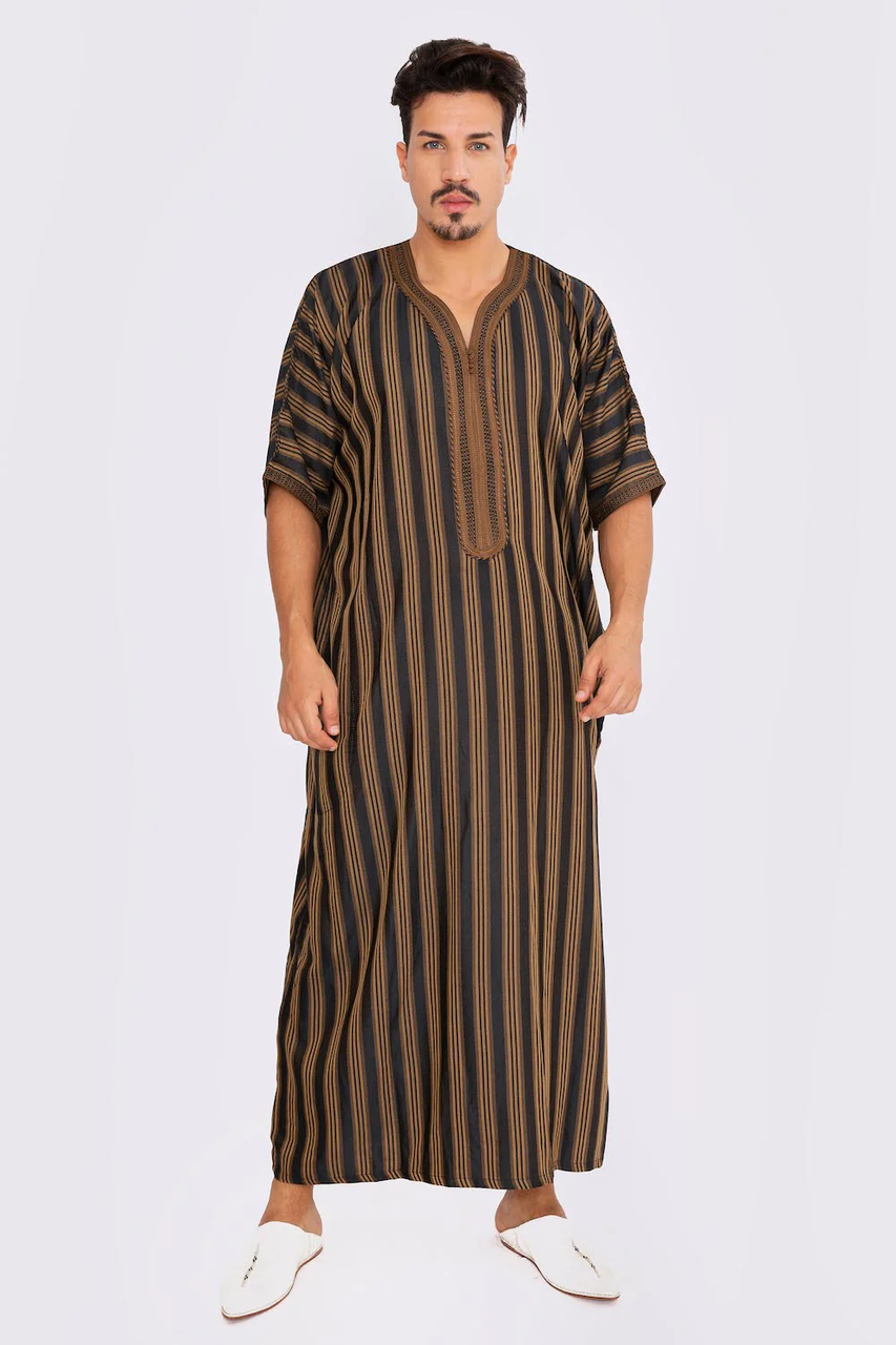 The Moroccan Djellaba is a long, loose-fitting robe with a pointed hood that is worn by men throughout Morocco. It is made of a comfortable, lightweight fabric such as cotton or wool, which makes it ideal for the country’s warm climate. The Djellaba can be worn as a casual garment around the house or as formal attire for special occasions. It is often paired with a scarf or a fez.